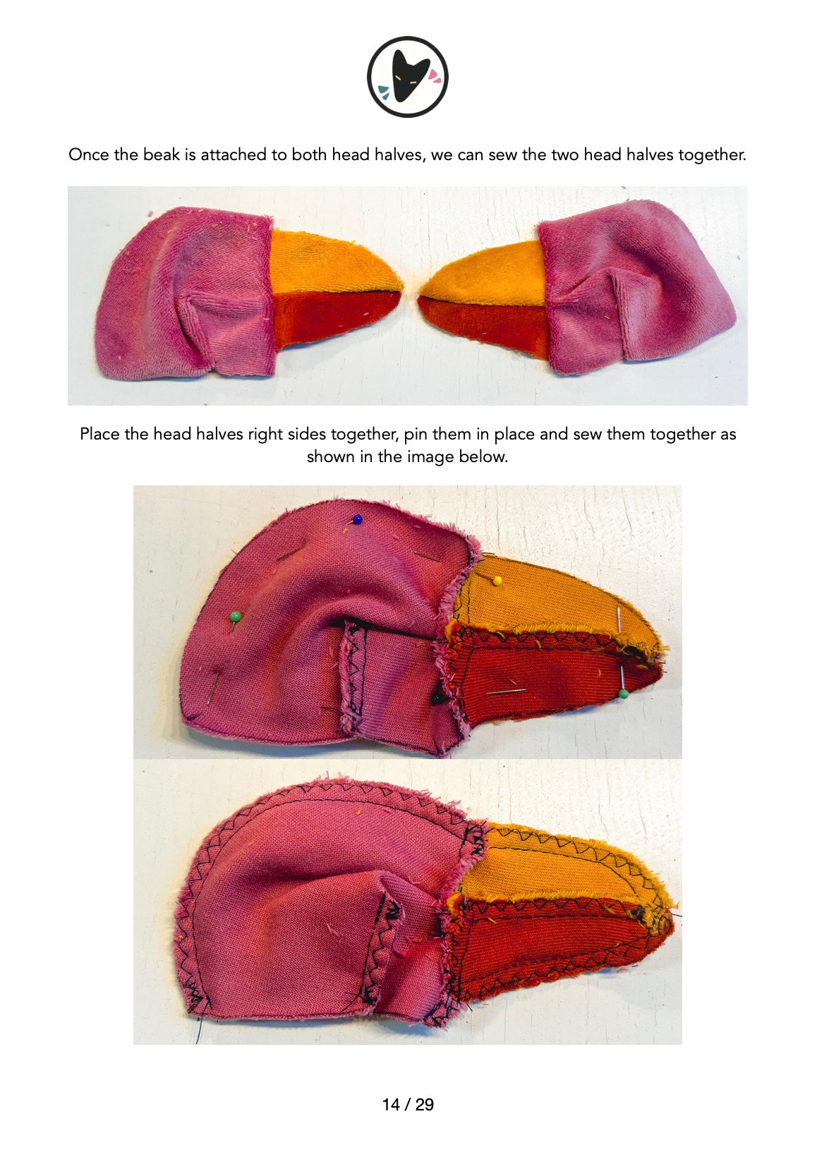 Tärkeää! Ohjeissa kerrotaan tarkasti, kuinka monta kaavan osaa tulee jäljentää ja leikata valmista pehmoa varten.